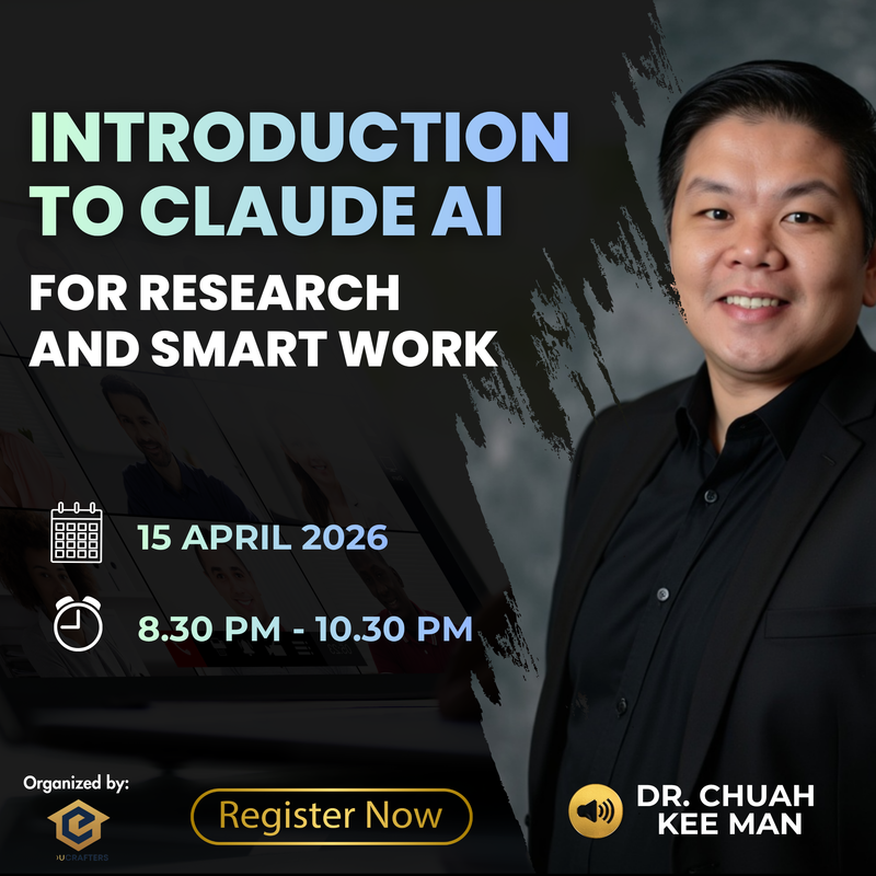 Dengan pengalaman luas dalam dunia akademik dan praktikal, Dr. Chuah akan membimbing anda menggunakan Claude AI dengan cara yang mudah difahami dan terus boleh diaplikasikan.