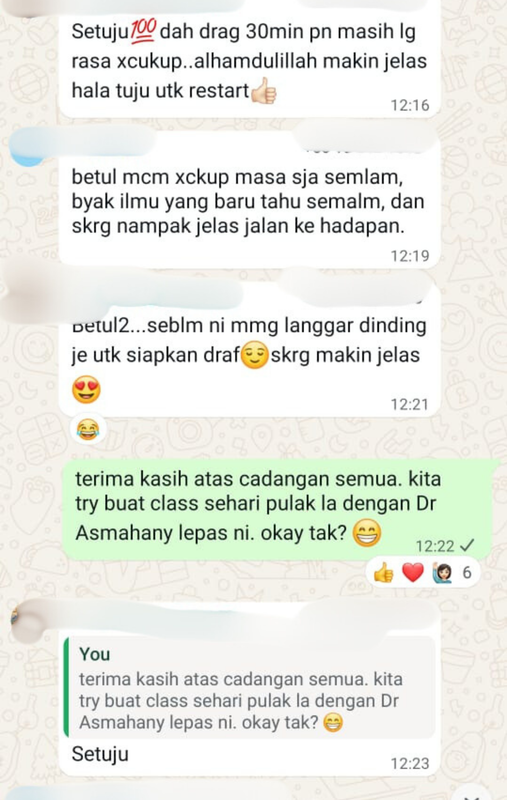 Dalam masterclass ini, Dr. Asmahany akan berkongsi pendekatan praktikal yang boleh terus diaplikasikan — bukan sekadar konsep umum yang sukar diterjemahkan ke dalam penulisan sebenar.